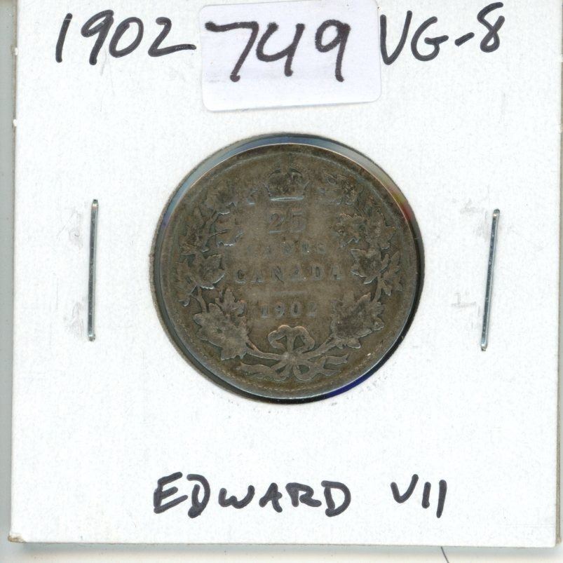 1902 Silver 25 Cents. The first issue of King Edward VII. VG-8.