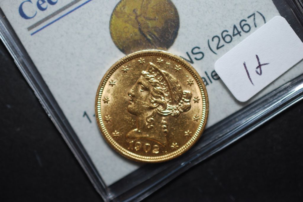 1902 US Liberty $5 Gold Coin; EST. $550-600