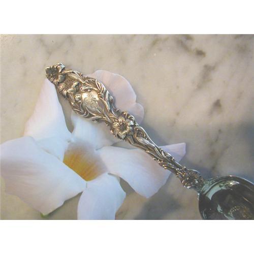 CIRCA 1902 ... WHITING STERLING SILVER "LILY" PATTERN SPOON 5 7/8" LONG ... SIMPLY GREAT FOR SERVING JAM, CONDIMENTS, ETC ... NOTHING COULD BE PRETTIER.