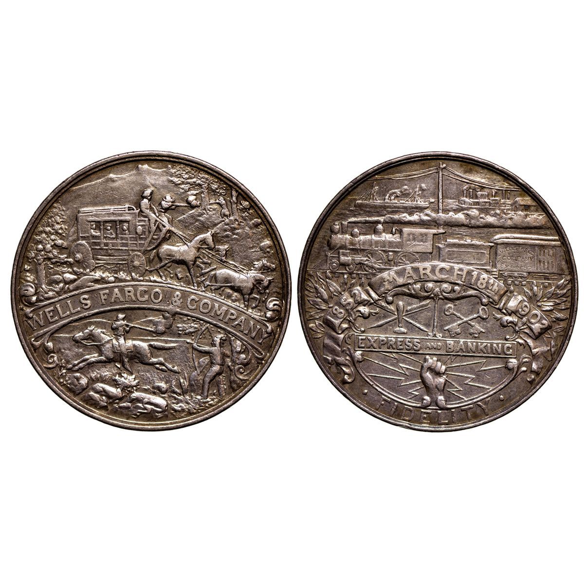 Wells Fargo and Company Semi Centennial 1852-1902 Silver piece (So-Called Dollar, HK-296). Very detailed obverse and reverse, AU condition
