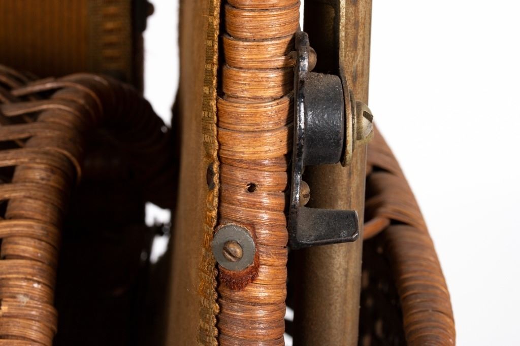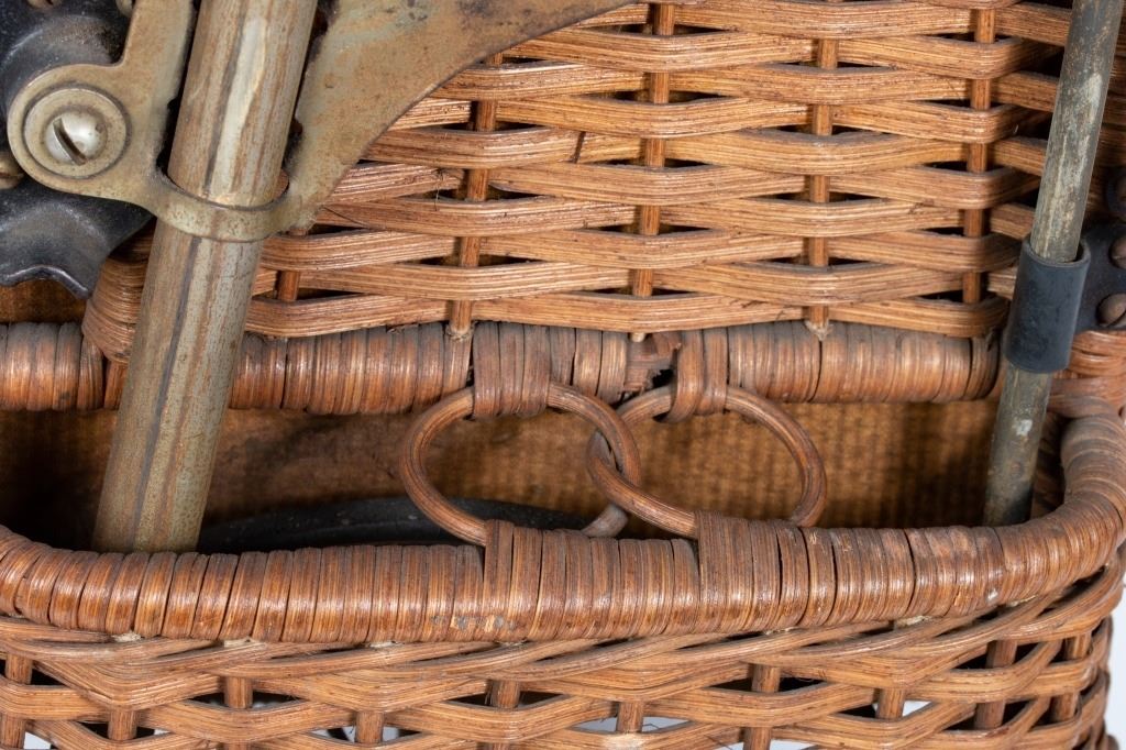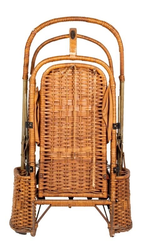 Described in period a trade catalog: "the Oriole Go-Basket can be used as a stroller, carrying device, short-term baby bed and when put into a chair it can be used as a highchair. You could also attach it to a stand making it into a swing". Made of imported reed, the Oriole came in a variety of colors and lining materials. Weighing 7 1/2 pounds, the Go-Basket was for children from six weeks to three years old.