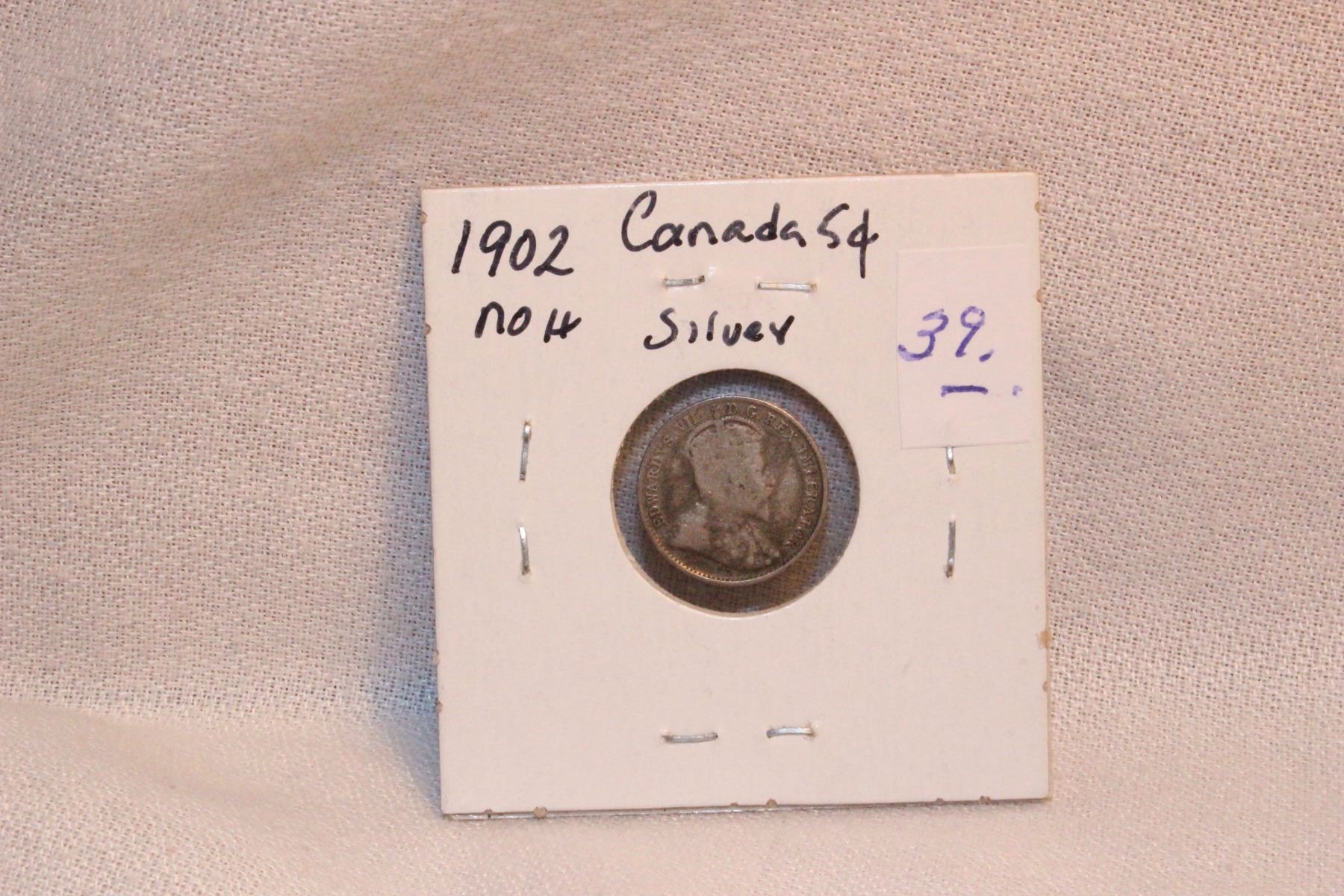 1902 (no H) Edward VII Canada Sterling Silver Five Cent