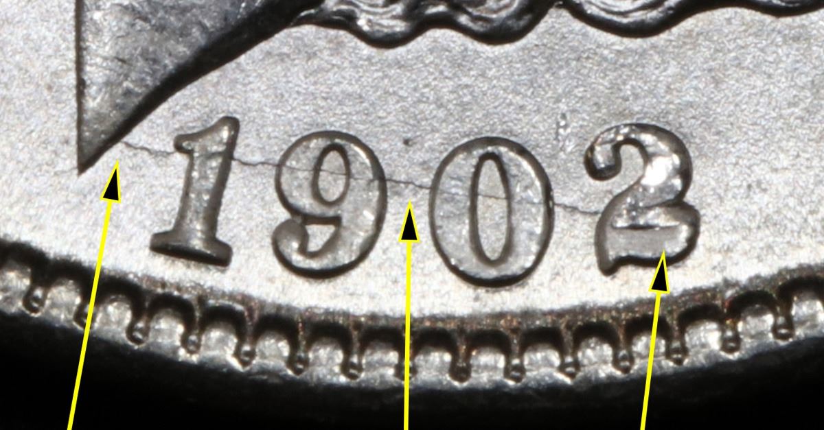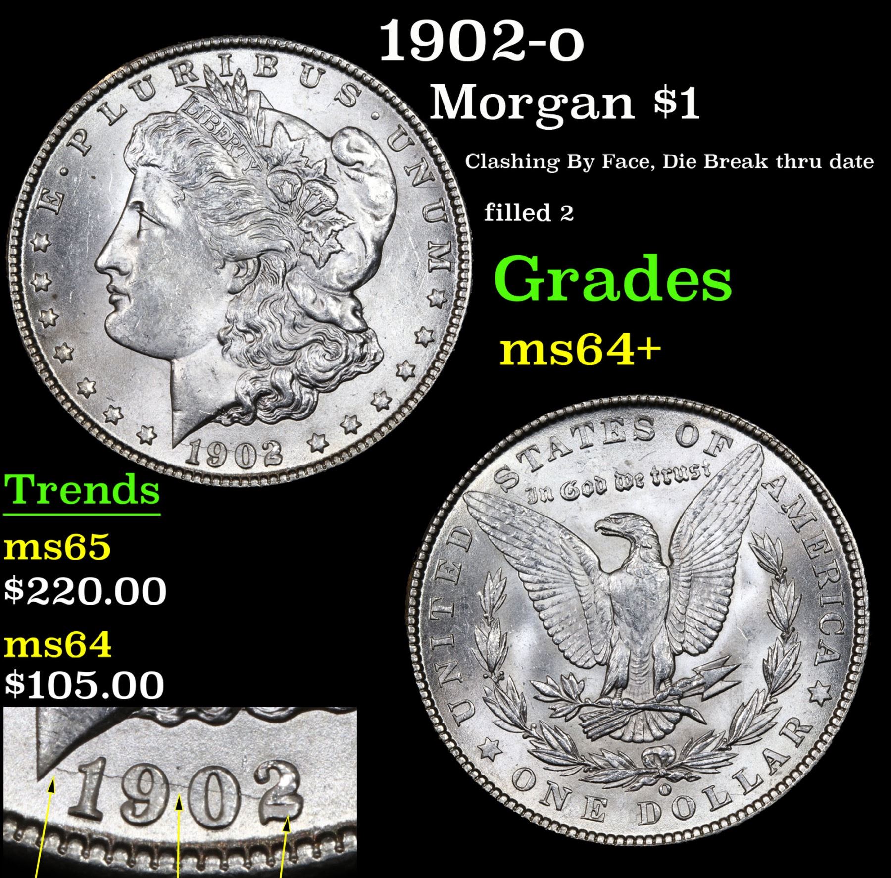 1902-o Clashing By Face, Die Break thru date filled 2 Morgan Dollar $1 Grades Choice+ Unc.