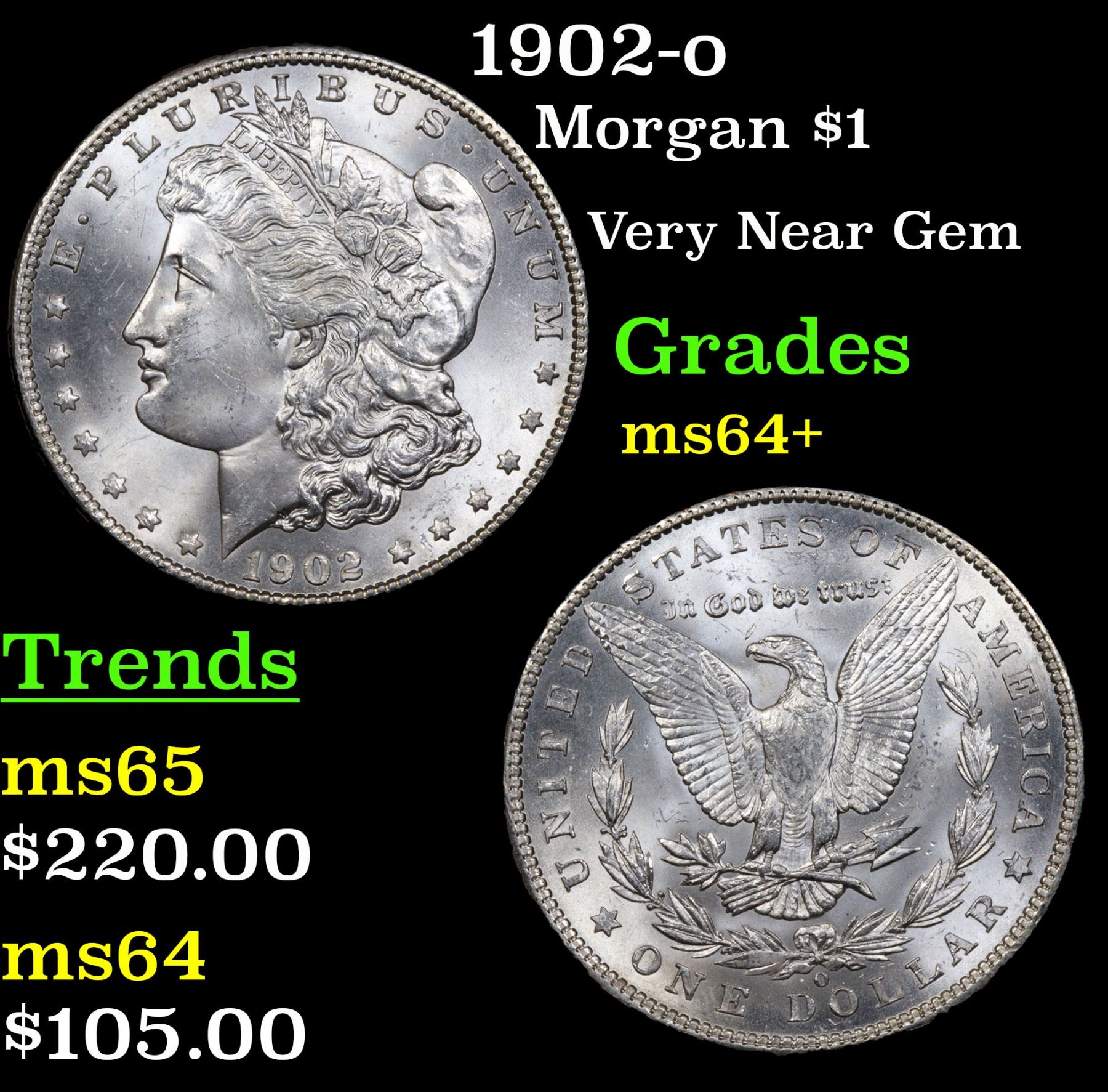 1902-o Morgan Dollar $1 Grades Choice+ Unc.