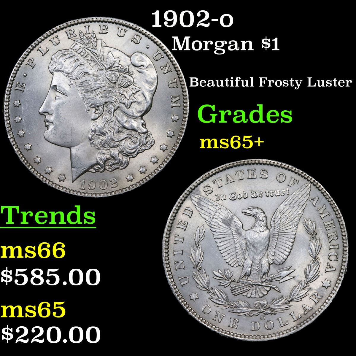 1902-o Beautiful Frosty Luster . Morgan Dollar $1 Grades GEM+ Unc.