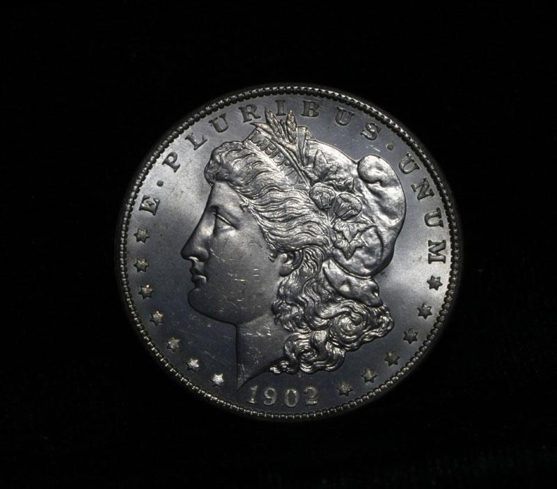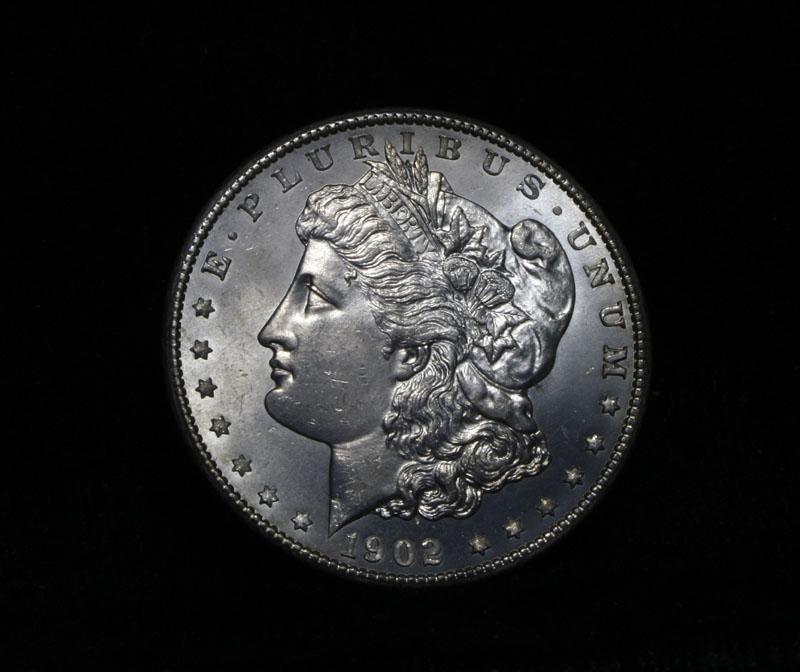 A spectacular Clean 1902-o Morgan. Superior Eye appeal, all original very attractively toned, with a blast white reverse with a thin golden rim toning. The Wholesale Greysheet lists ms65 at $212+. Estimated Value $225
