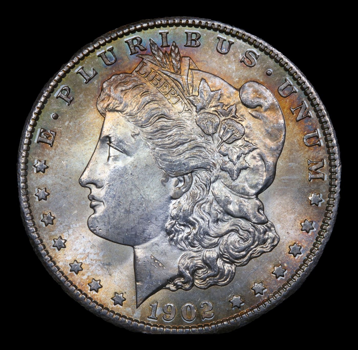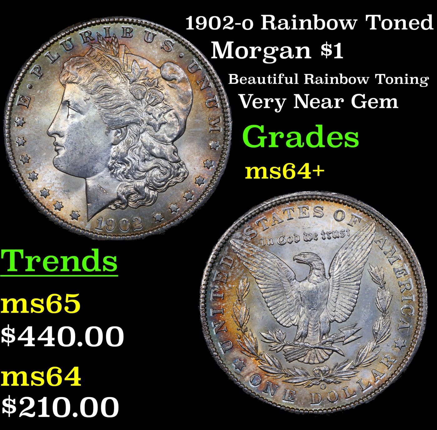 1902-o Rainbow Toned Morgan Dollar $1 Grades Choice+ Unc.