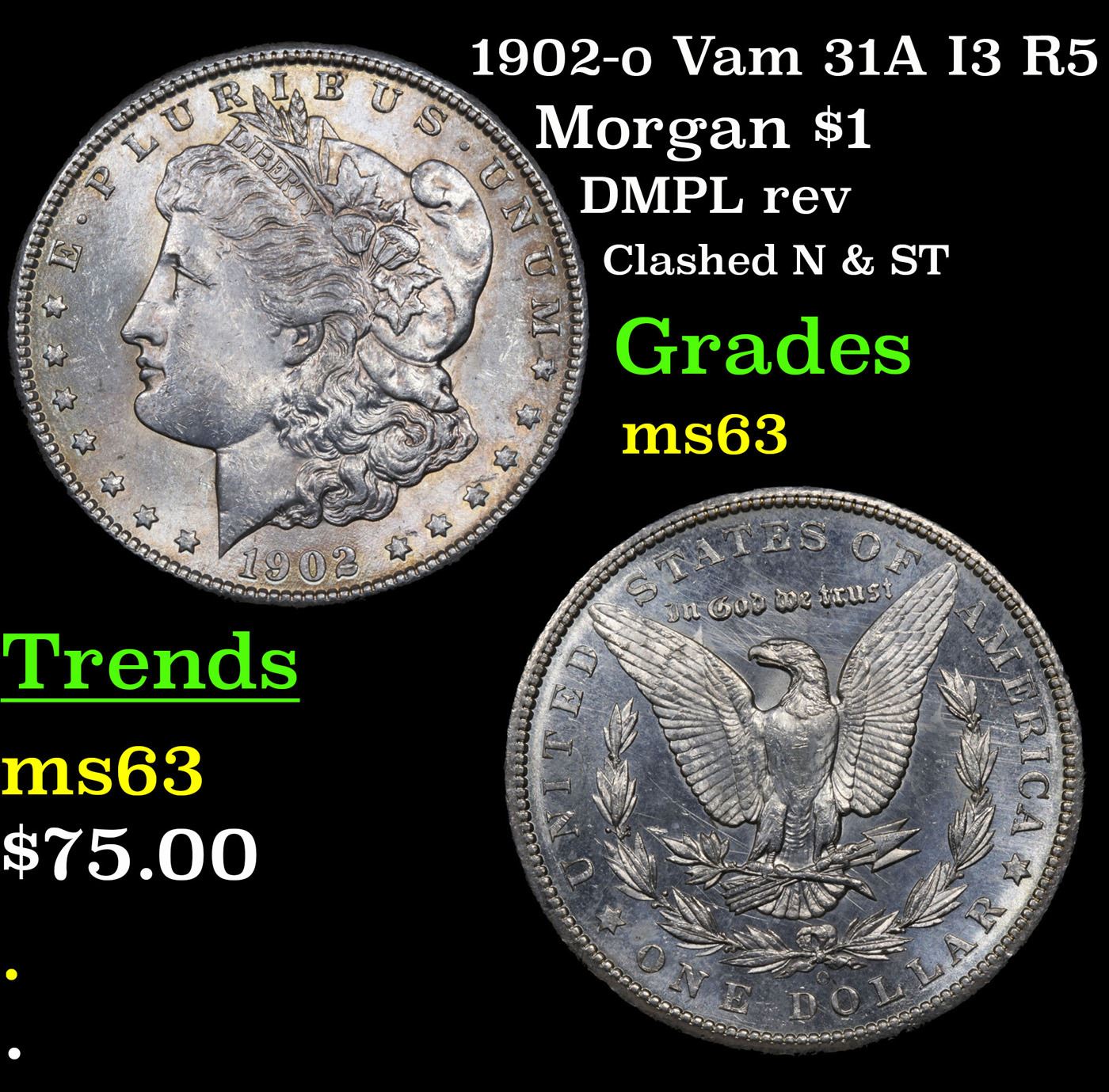 1902-o Vam 31A I3 R5 Morgan Dollar $1 Grades Select Unc.