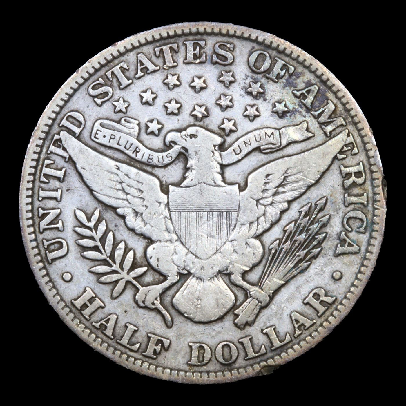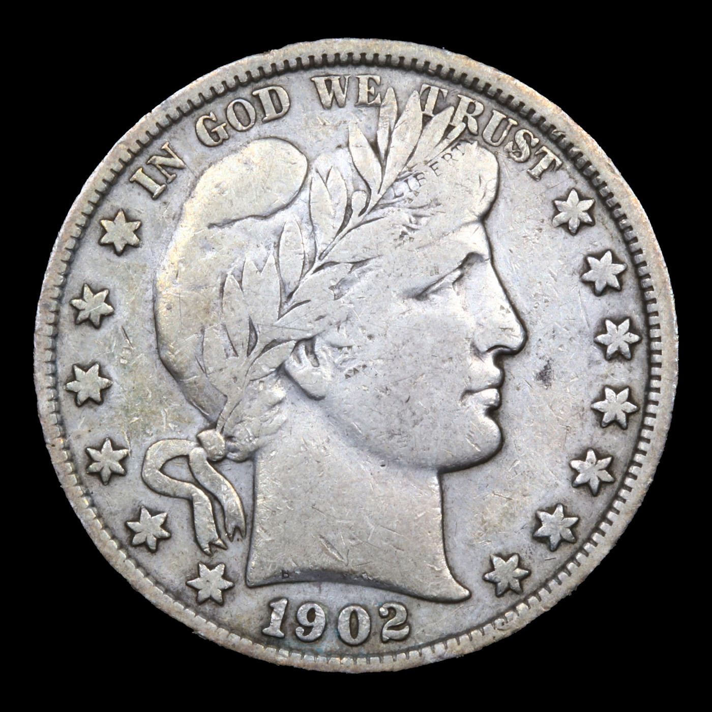 1902-p Barber Half Dollars 50c Grades vf+.