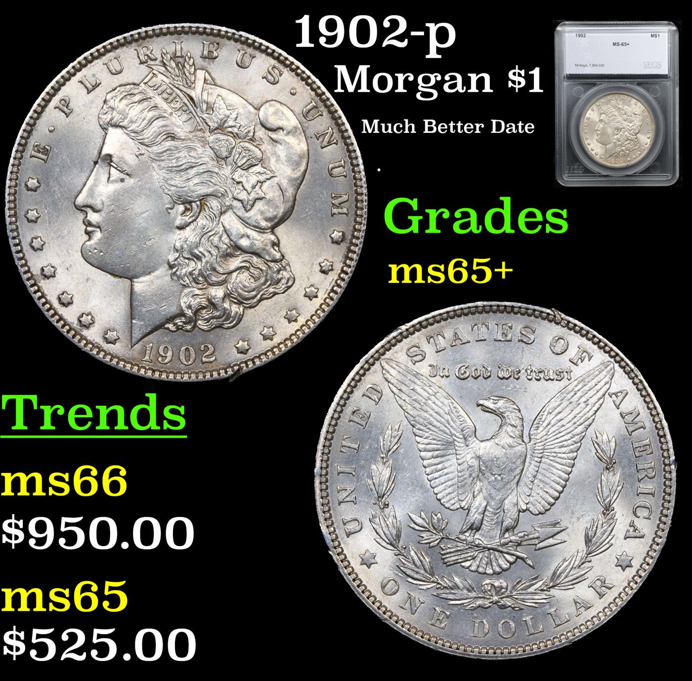 1902-p Morgan Dollar $1 Graded ms65+ By SEGS.