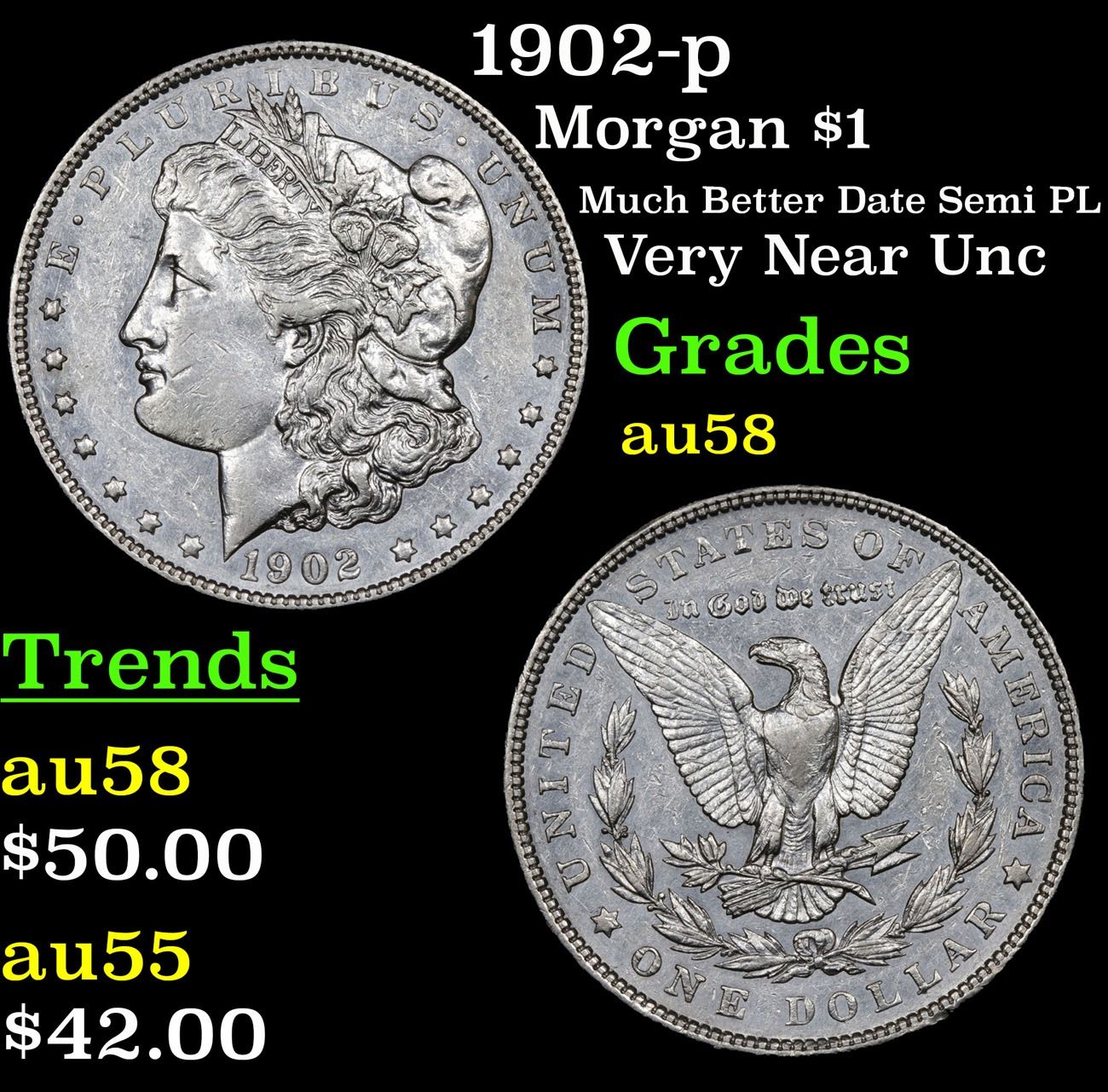 1902-p Much Better Date Semi PL Very Near Unc Morgan Dollar $1 Grades Choice AU/BU Slider.