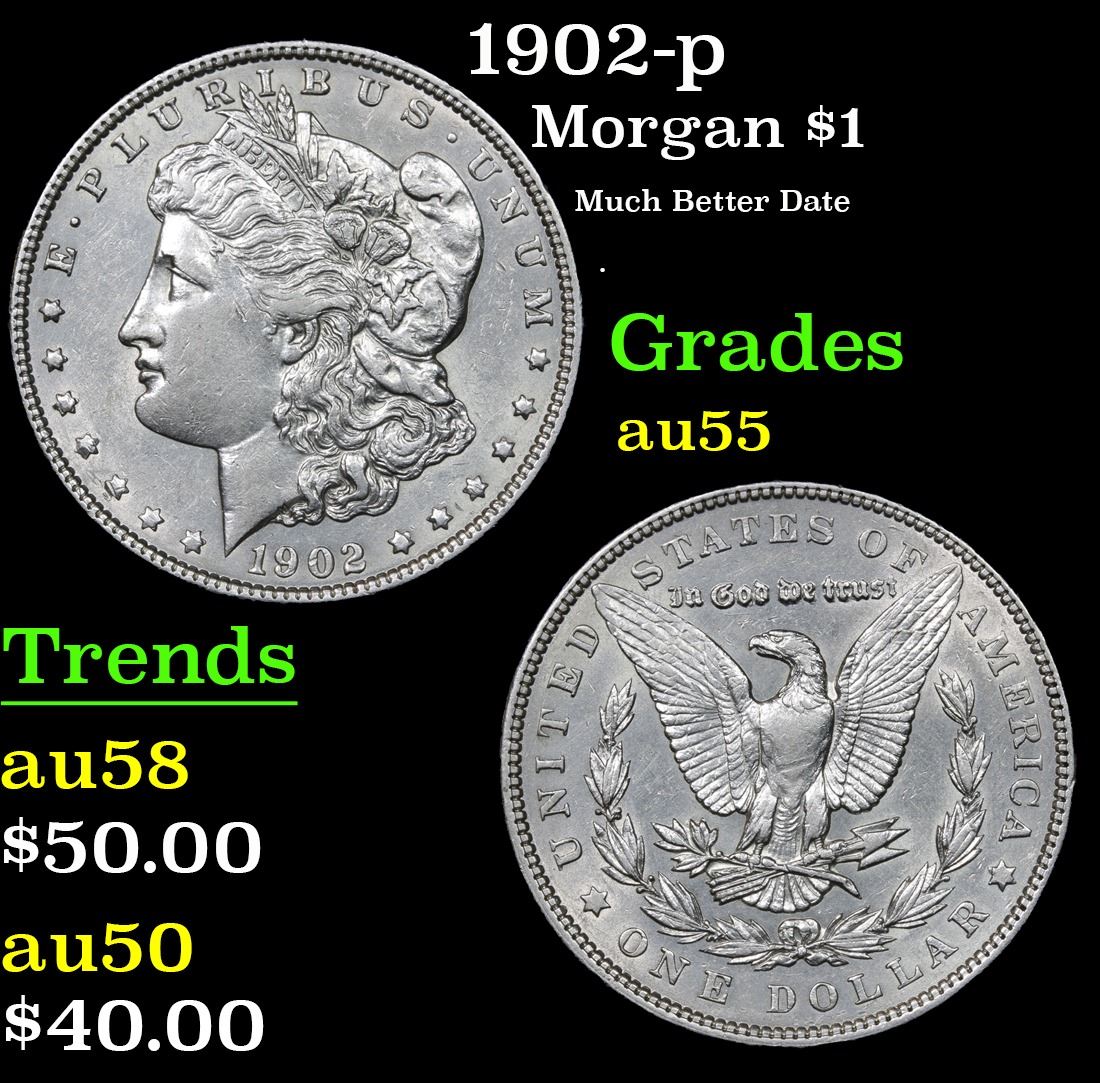 1902-p Much Better Date . Morgan Dollar $1 Grades Choice AU.