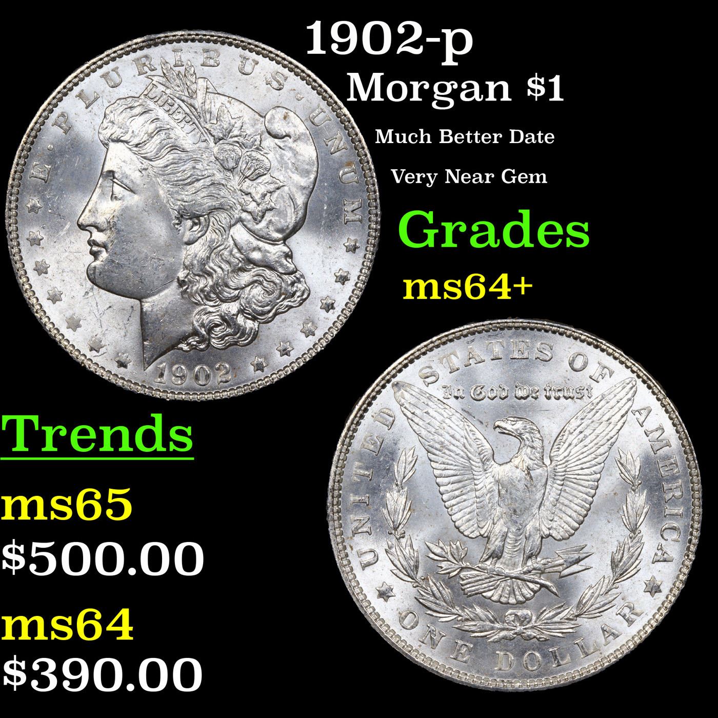 1902-p Morgan Dollar $1 Grades Choice+ Unc.