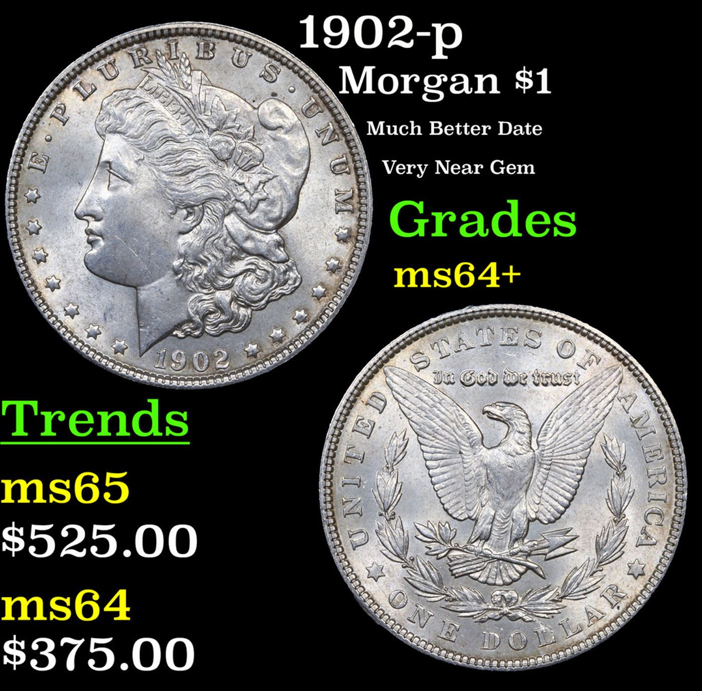 1902-p Morgan Dollar $1 Grades Choice+ Unc.