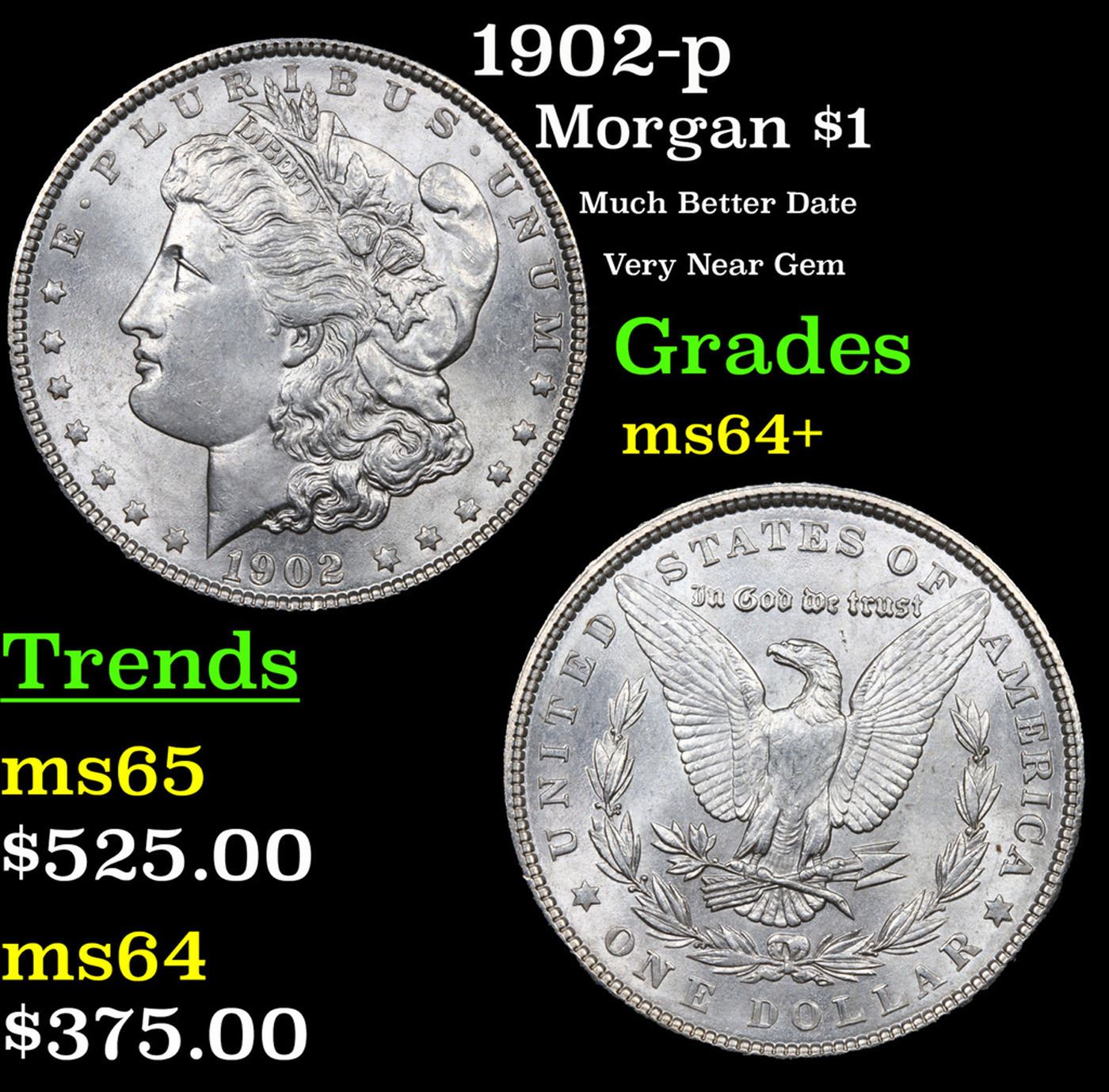 1902-p Morgan Dollar $1 Grades Choice+ Unc.