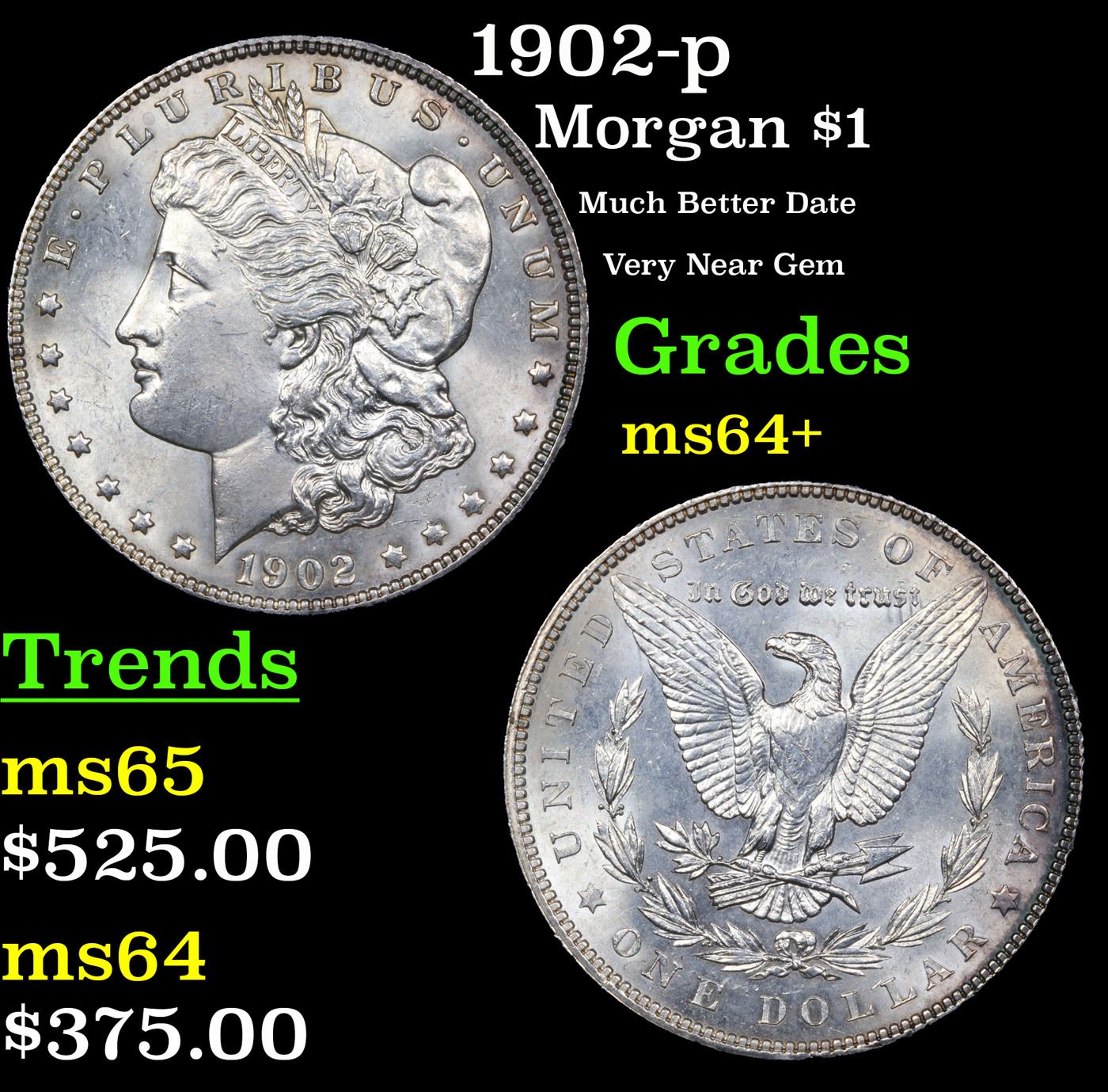 1902-p Morgan Dollar $1 Grades Choice+ Unc.