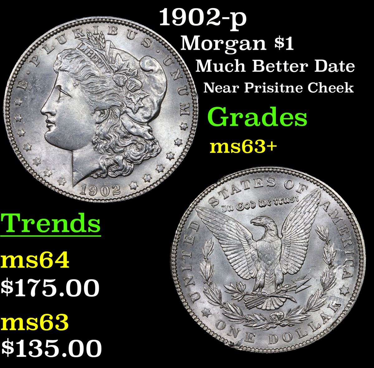 1902-p Morgan Dollar $1 Grades Select+ Unc.