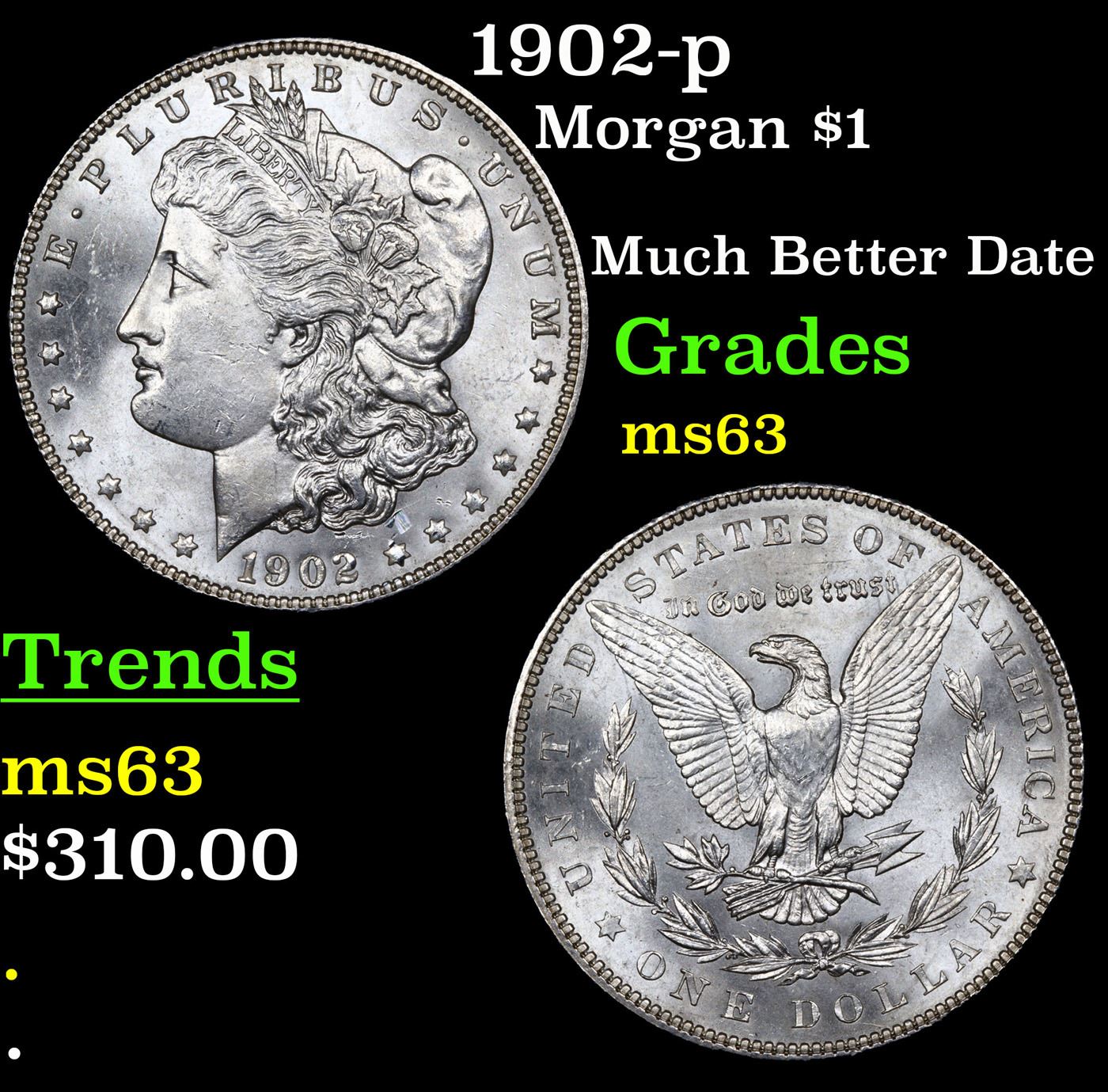 1902-p Morgan Dollar $1 Grades Select Unc.