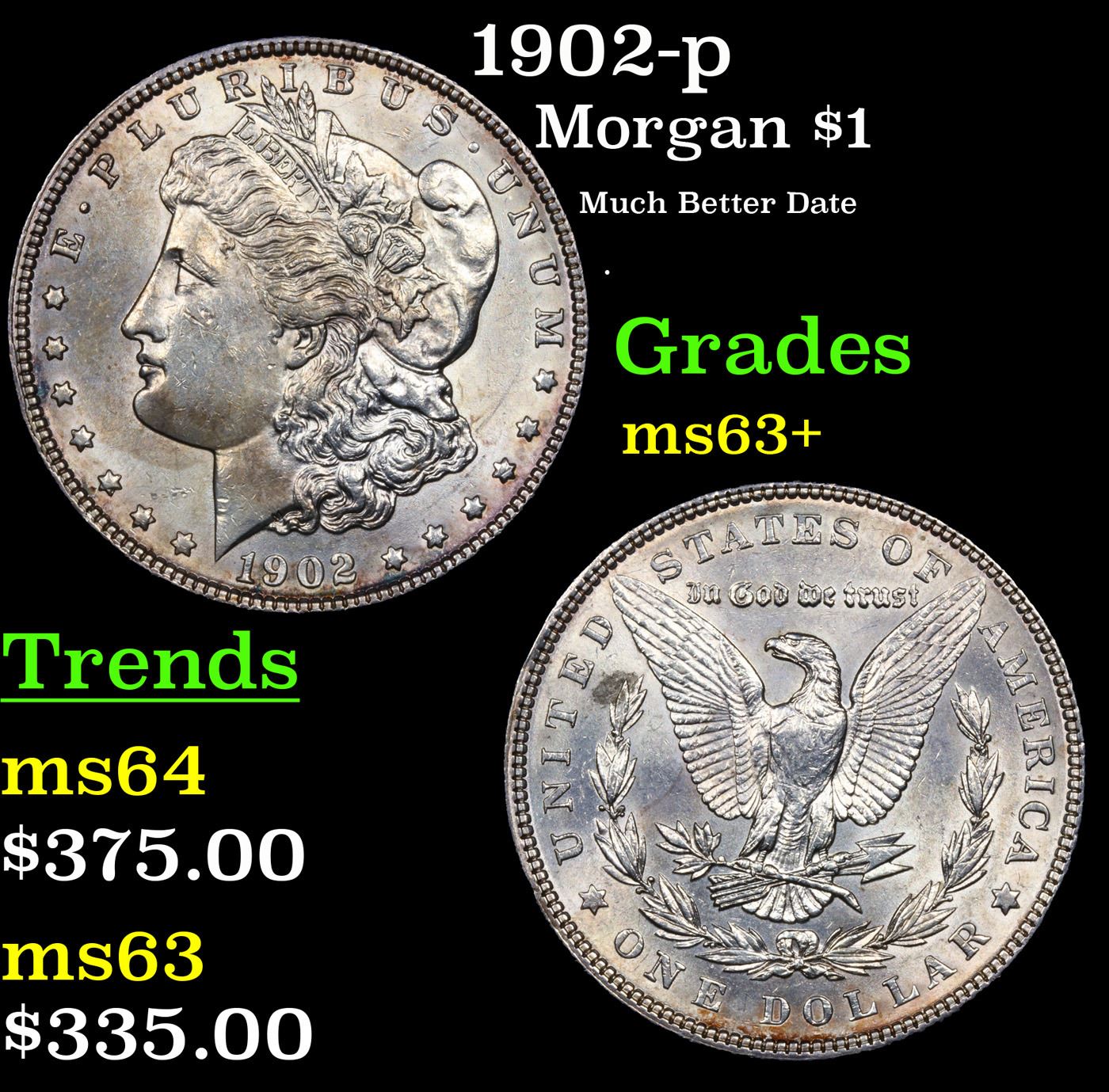 1902-p Morgan Dollar $1 Grades Select+ Unc.