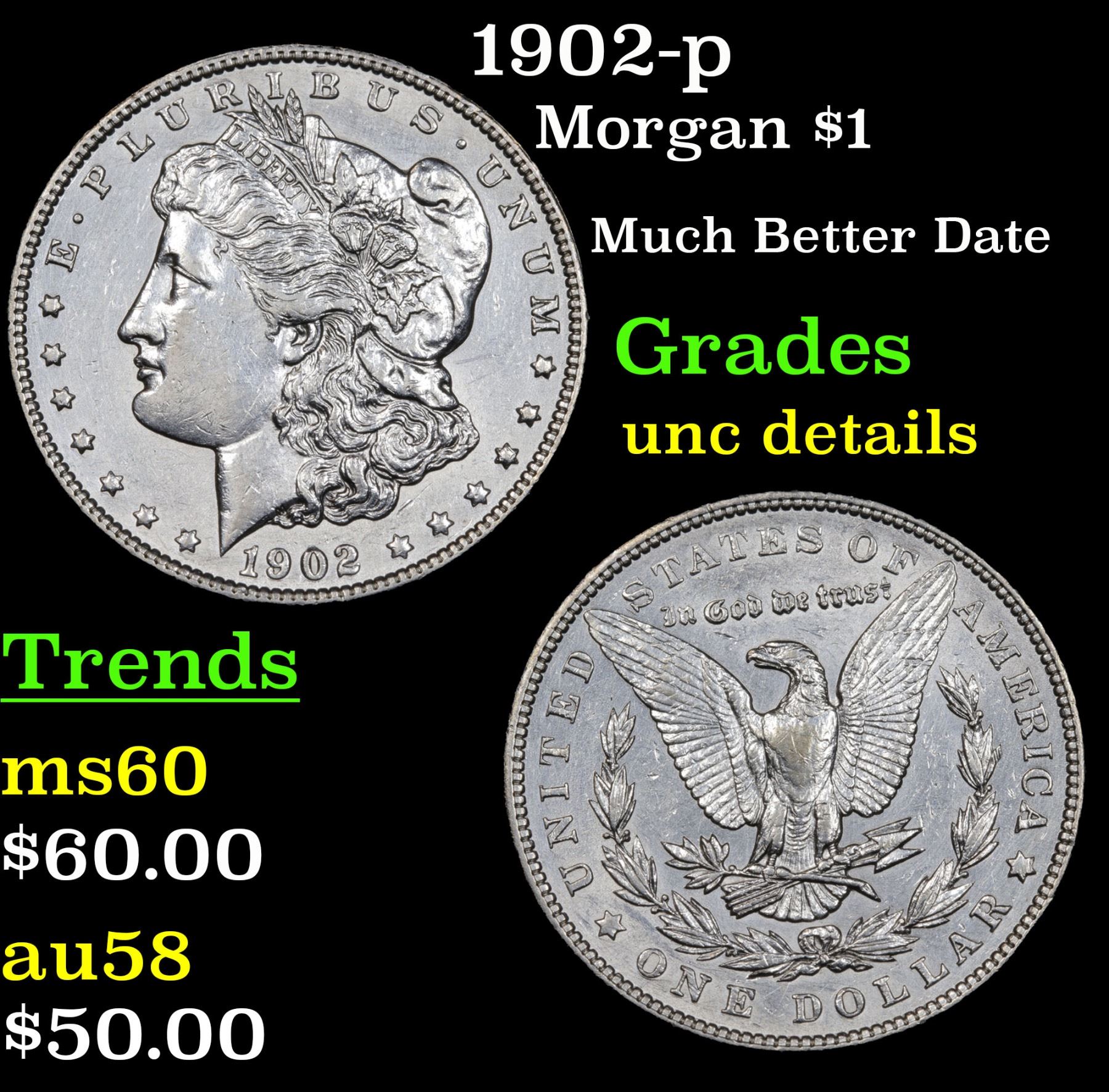 1902-p Much Better Date . Morgan Dollar $1 Grades Unc Details.