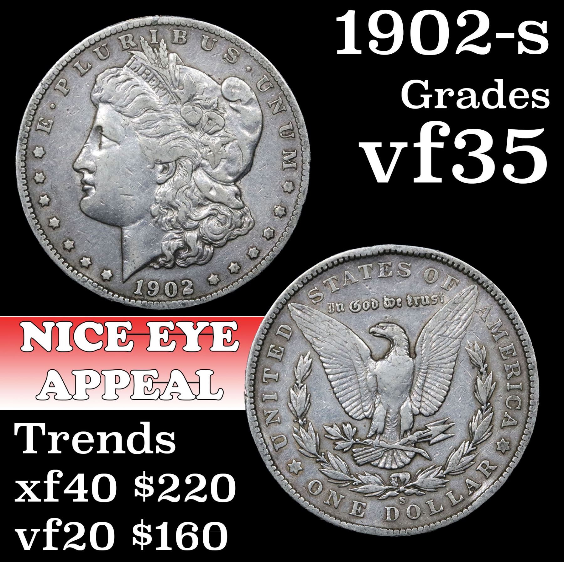 1902-s Morgan Dollar $1 Grades vf++.