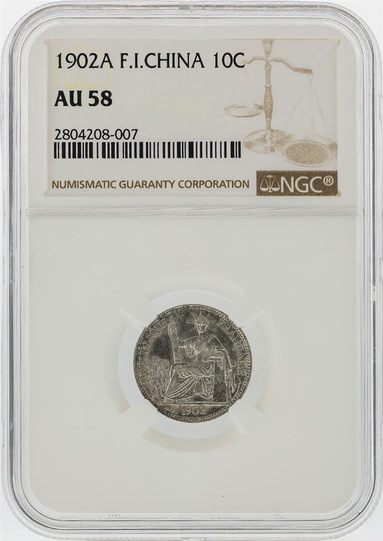 One 1902A F.I. China 10C Coin NGC Graded AU58. NGC Certified.