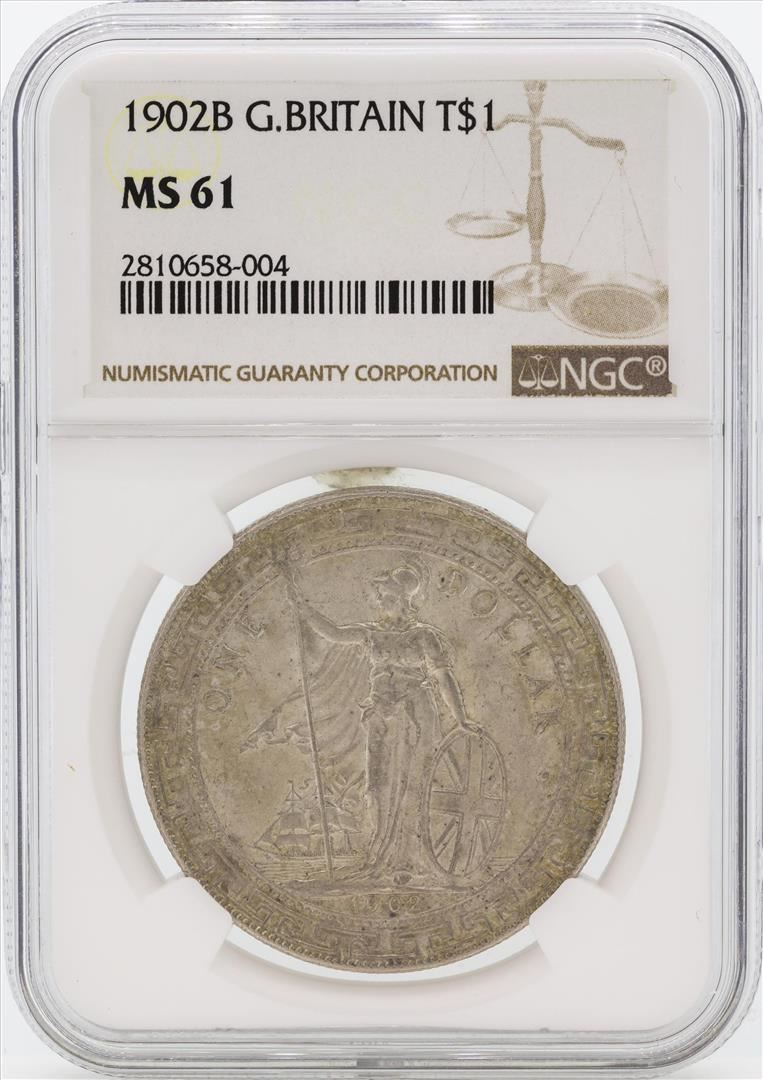 One 1902B $1 Great Britain Trade Dollar Coin NGC MS61. NGC Certified.