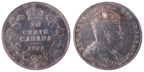 1902H 10 Cents ICCS MS-65. Pink colours.