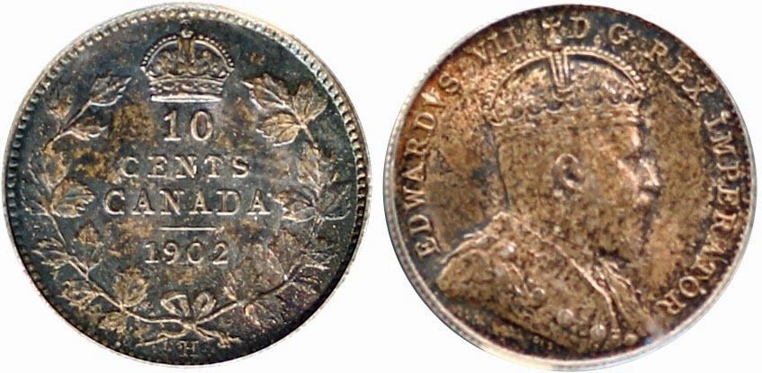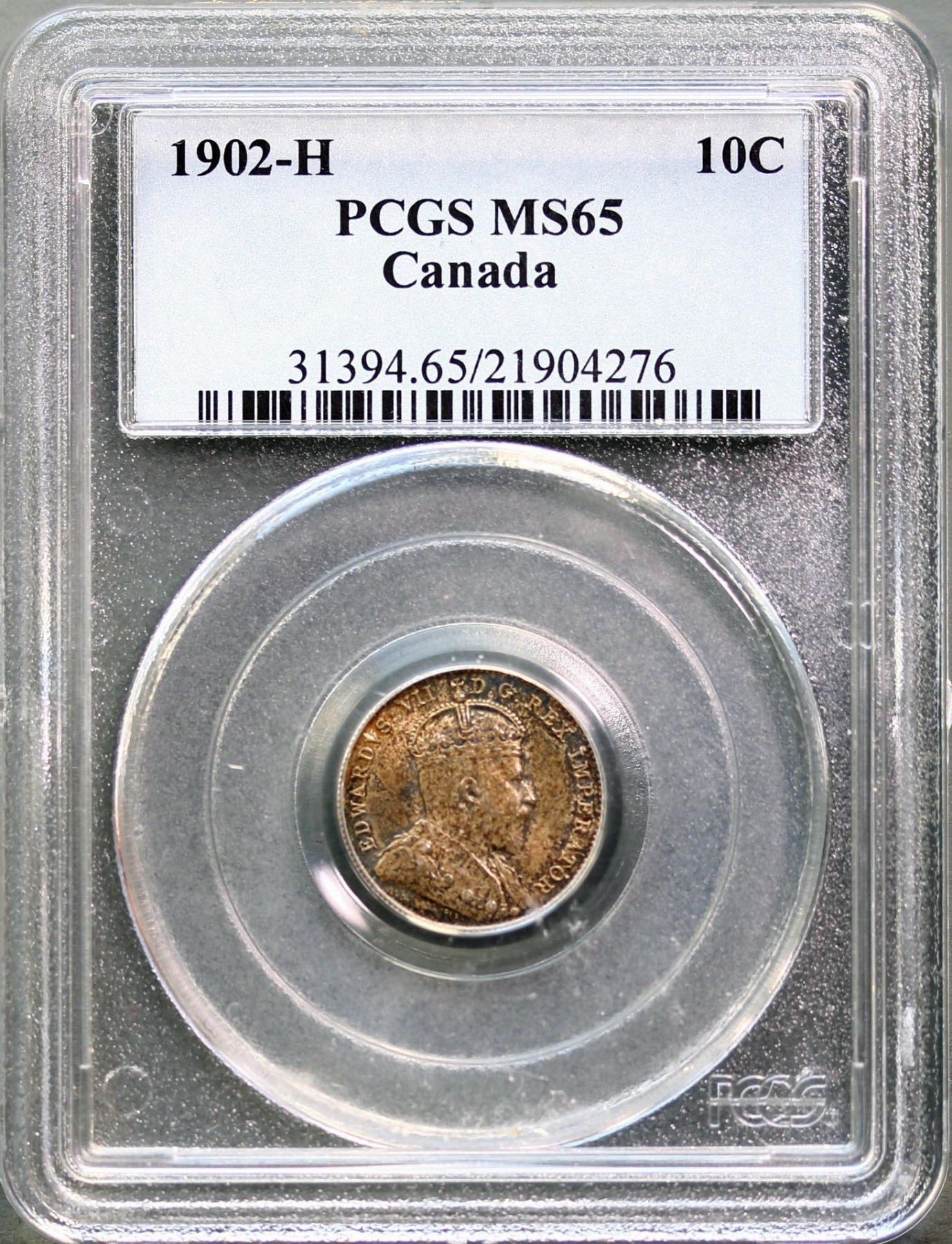 1902H 10¢ PCGS Gem Mint State-65 Attractive olive, gold and russet tones over full underlying lustre. A very flashy example.