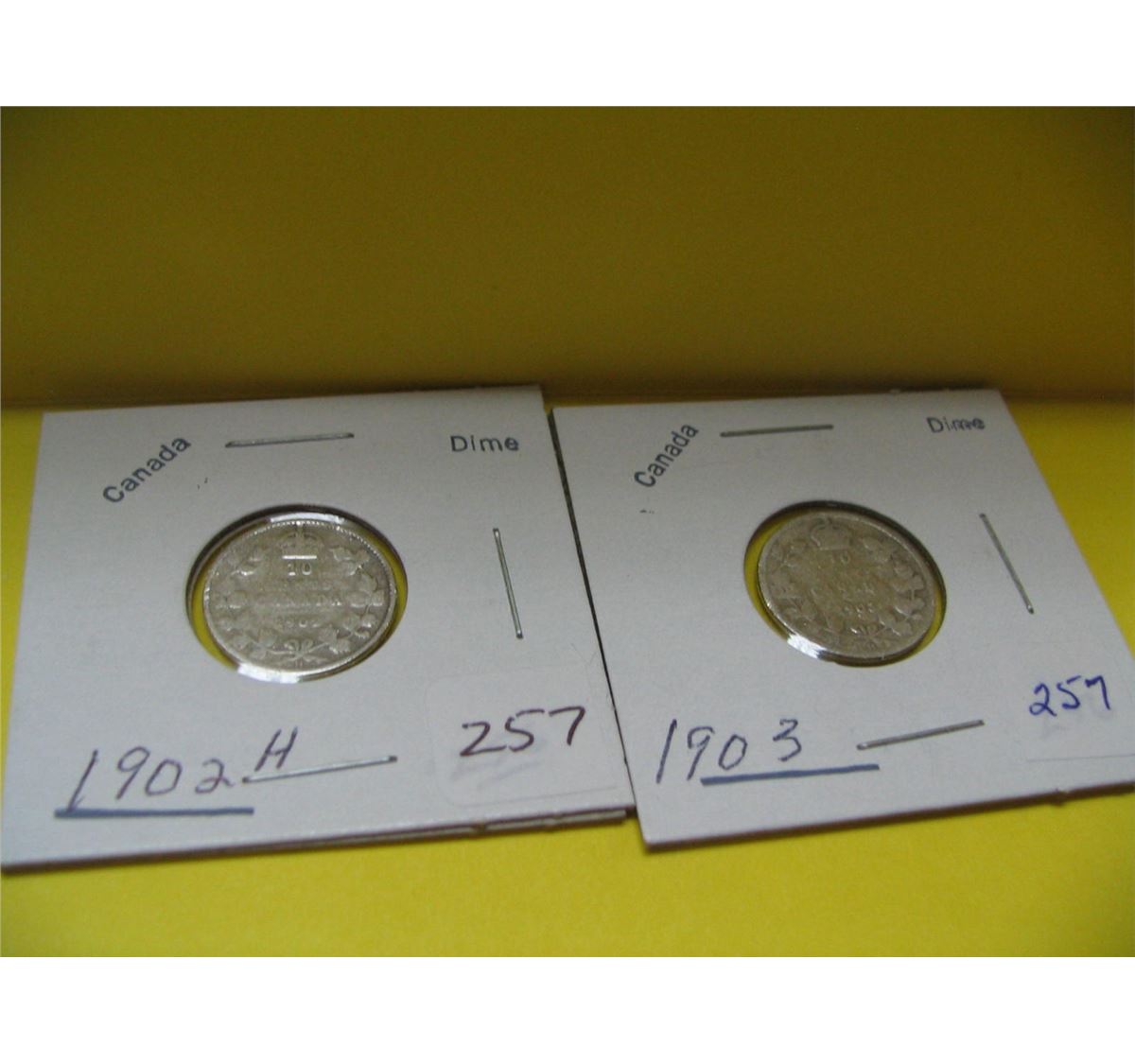 1902H, 1903 Cdn. Silver Ten Cent Pcs.