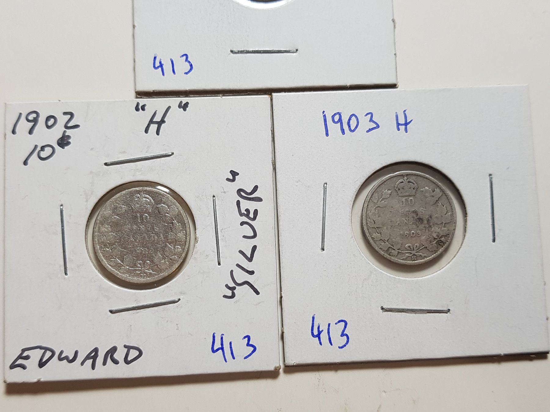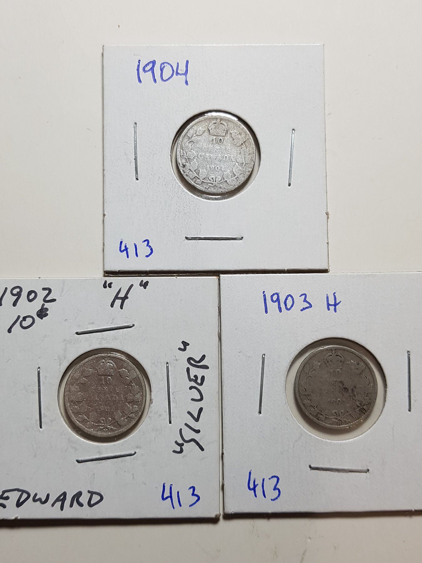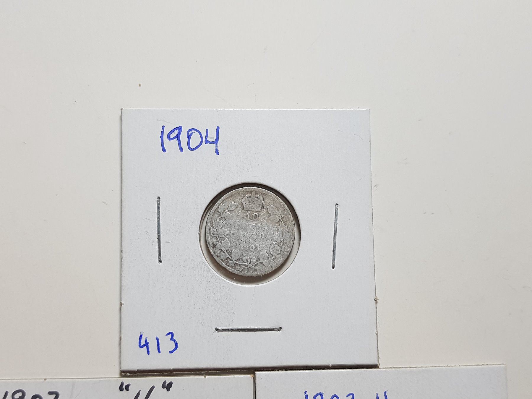 1902H, 1903H, AND 1904 SILVER TEN CENT COINS
