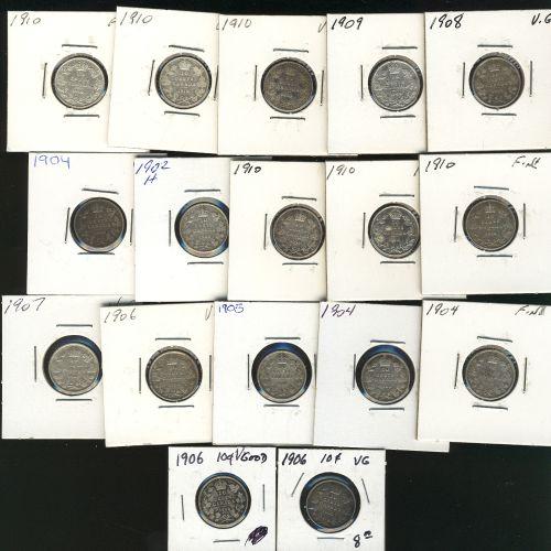 1902H, 1904 (3), 1905, 1906 (3), 1907, 1908, 1909, 1910 (6). A nice lot of 17 pieces VG-8 or better.
