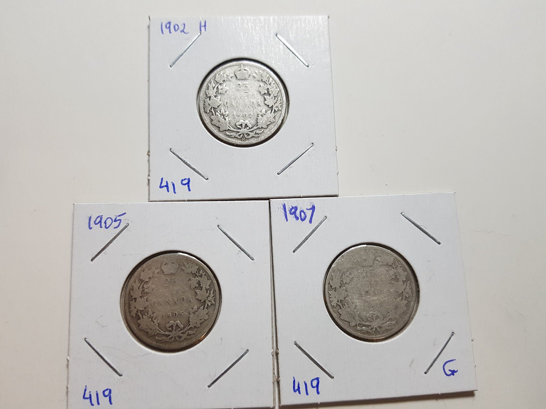 1902H, 1905, 1907 SILVER TWENTY FIVE CENT COINS (EDWARDS)