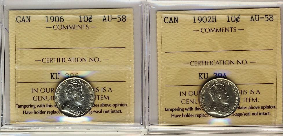 1902H & 1906 10¢ ICCS AU58.