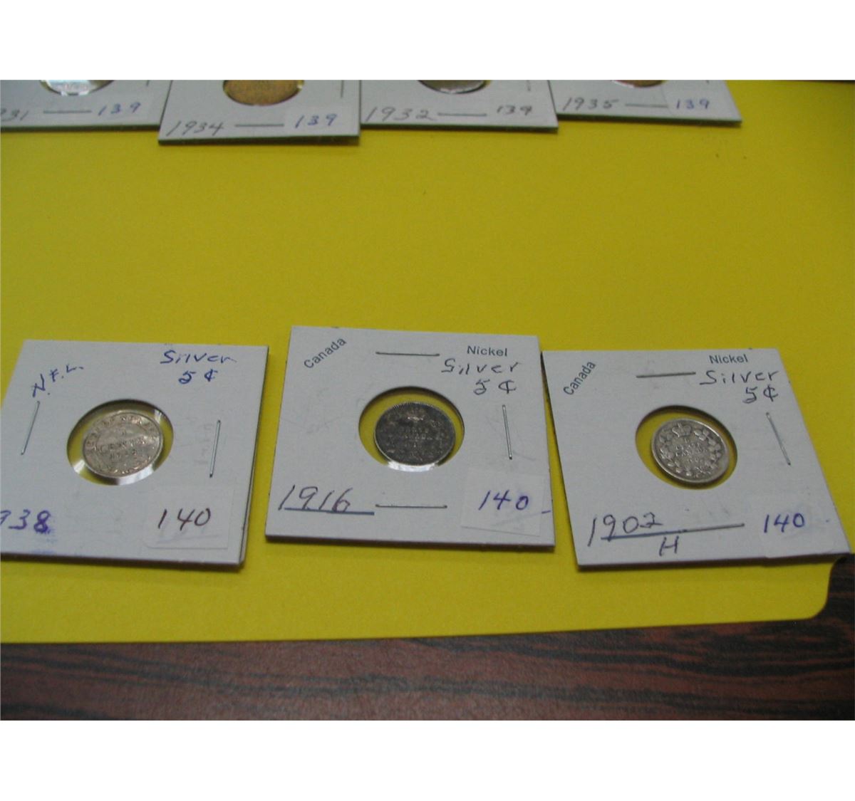 1902H, 1916, 1938 Cdn. Small Silver Five Cent Pcs.