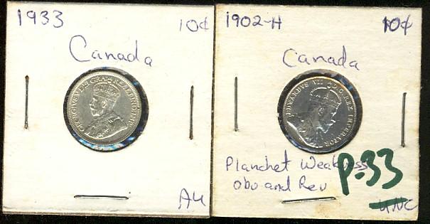 1902H, 1933 10¢, both EF-40 or better. Brilliant.