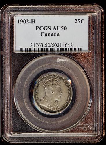 1902H 25¢. A strong example certified PCGS AU50, fully detailed with light lustre.