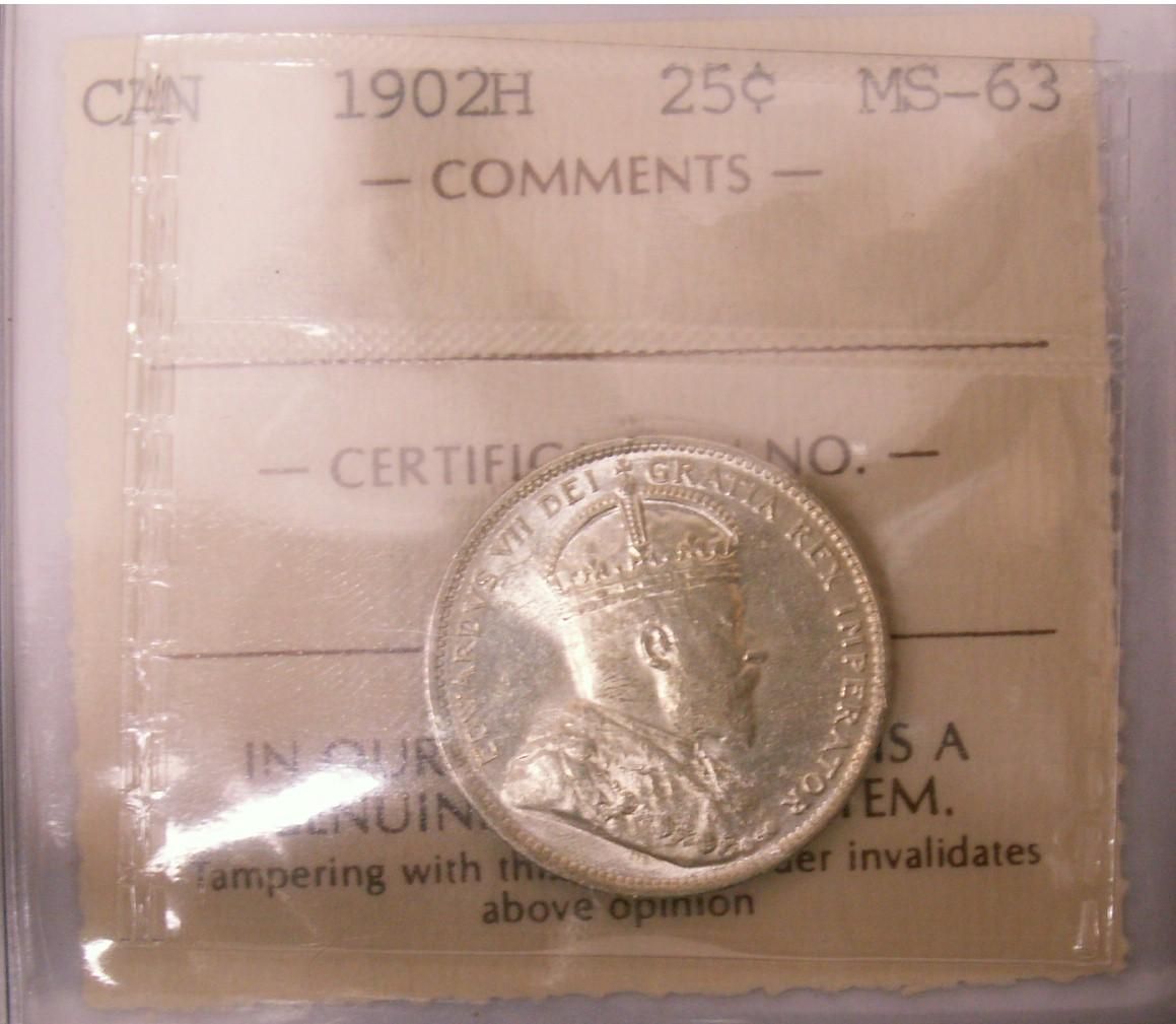 1902H 25¢ ICCS MS63. Blast white and lustrous.