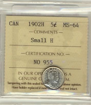 1902H 5¢ ICCS MS64.