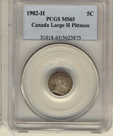 1902H 5¢ LG H PCGS MS65. Pittman example. Nice autumn shades.