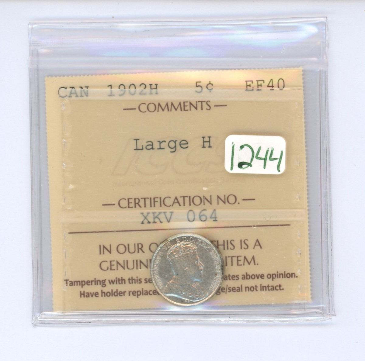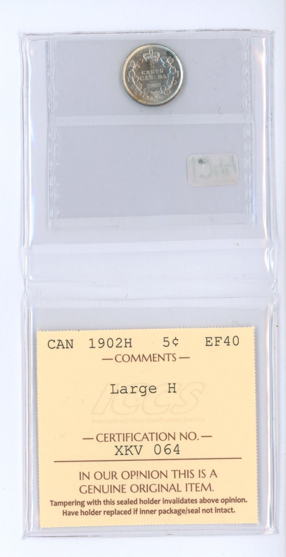 1902H ICCS graded, Canadian silver 5 cent coin - EF40