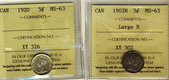 1902H Lg & 1920 ICCS MS63. Lot of 2 coins.