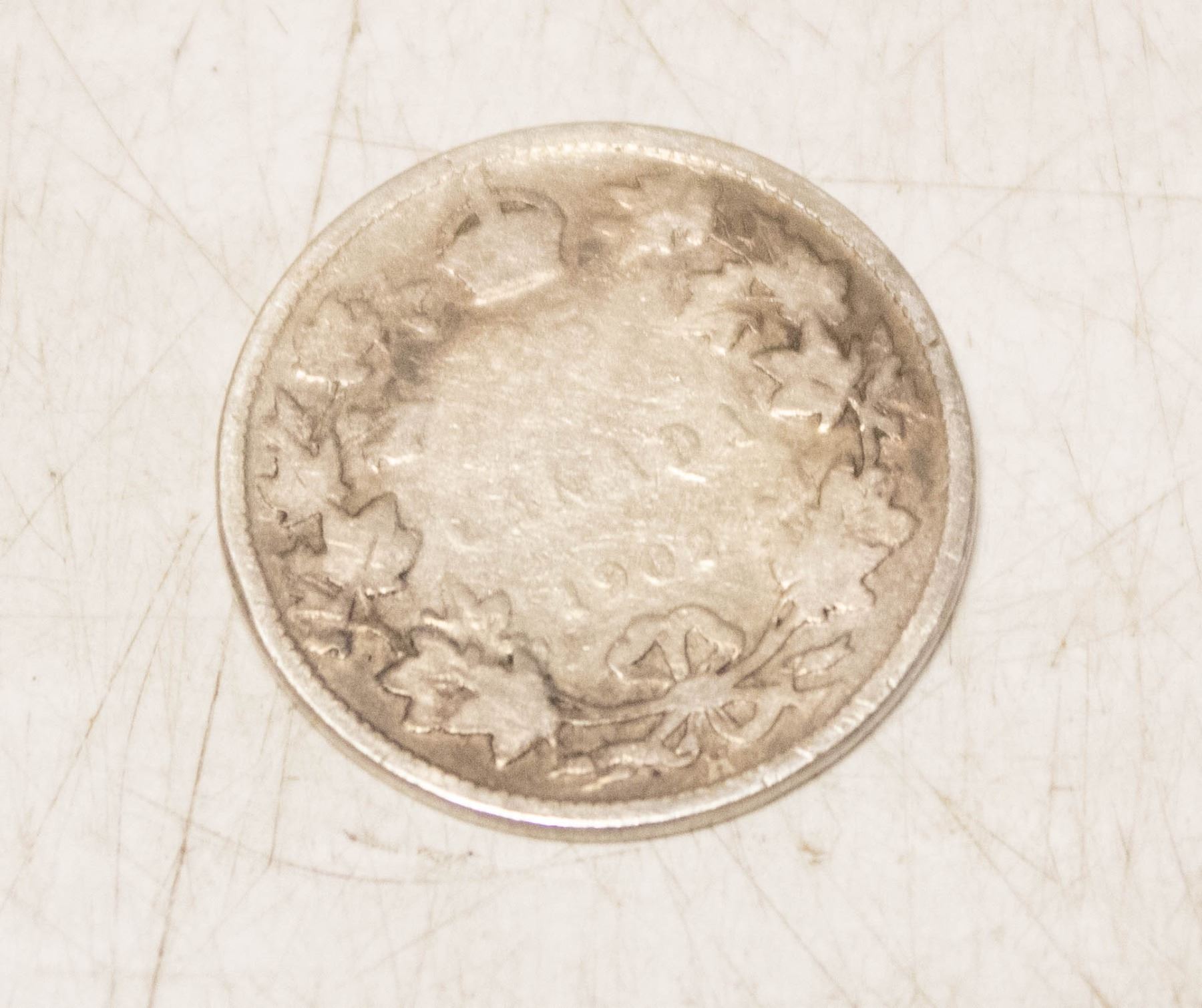 1902H OLD SILVER CANADA 25 CENTS COIN, CIRCULATED