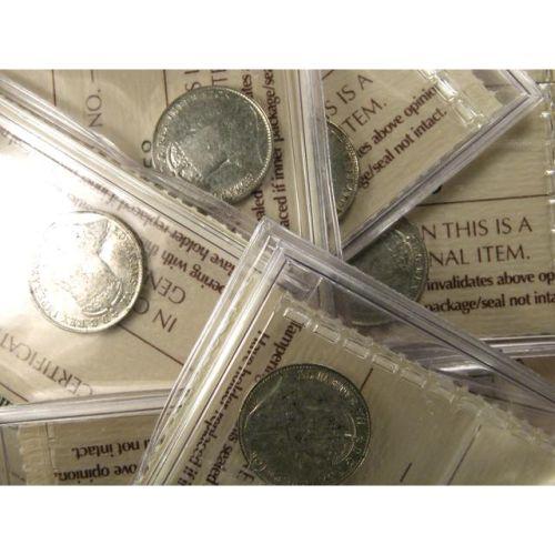 RETURN POLICIES: Bearing in mind the preceding paragraph, and except where noted in the descriptions of some of the bulk lots, within five days of their receipt of lots, absentee bidders may return (in their intact holders) for refund any lots that are mis-attributed or incorrectly catalogued. Excepted from this are those bidders whose late invoice settlement causes such return to extend beyond twenty-eight days after the sale. Please note, certified coins cannot be returned for reason of a bidder’s disagreement with the grading; grading disputes need to be addressed to the certification company.