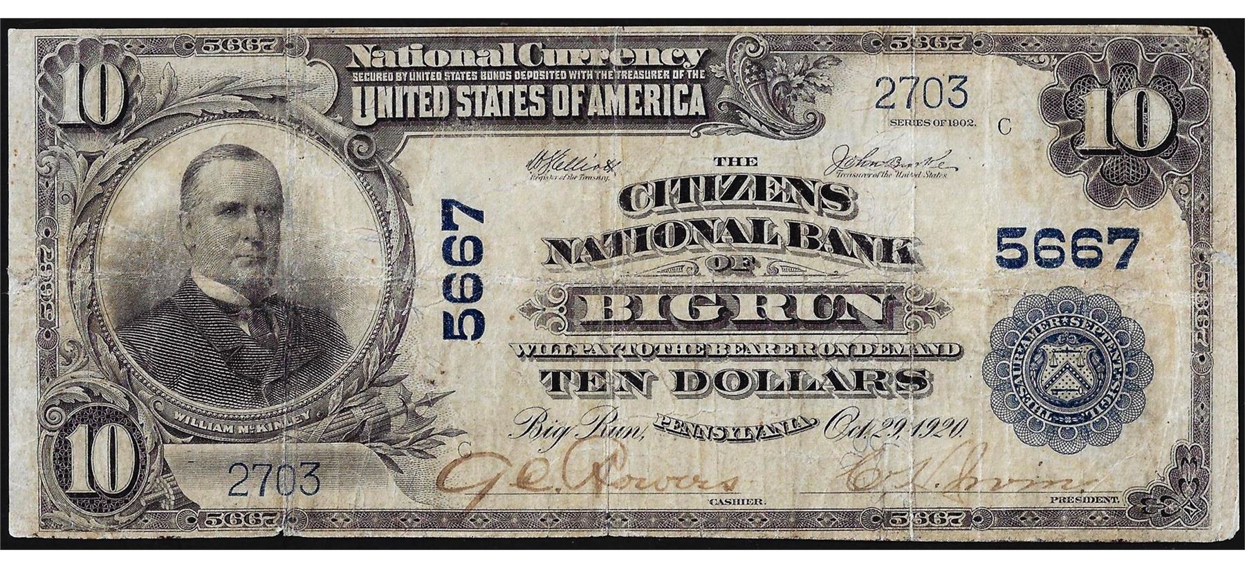 One 1902PB $10 Citizens National Bank of Big Run CH# 5667 National Currency Note.