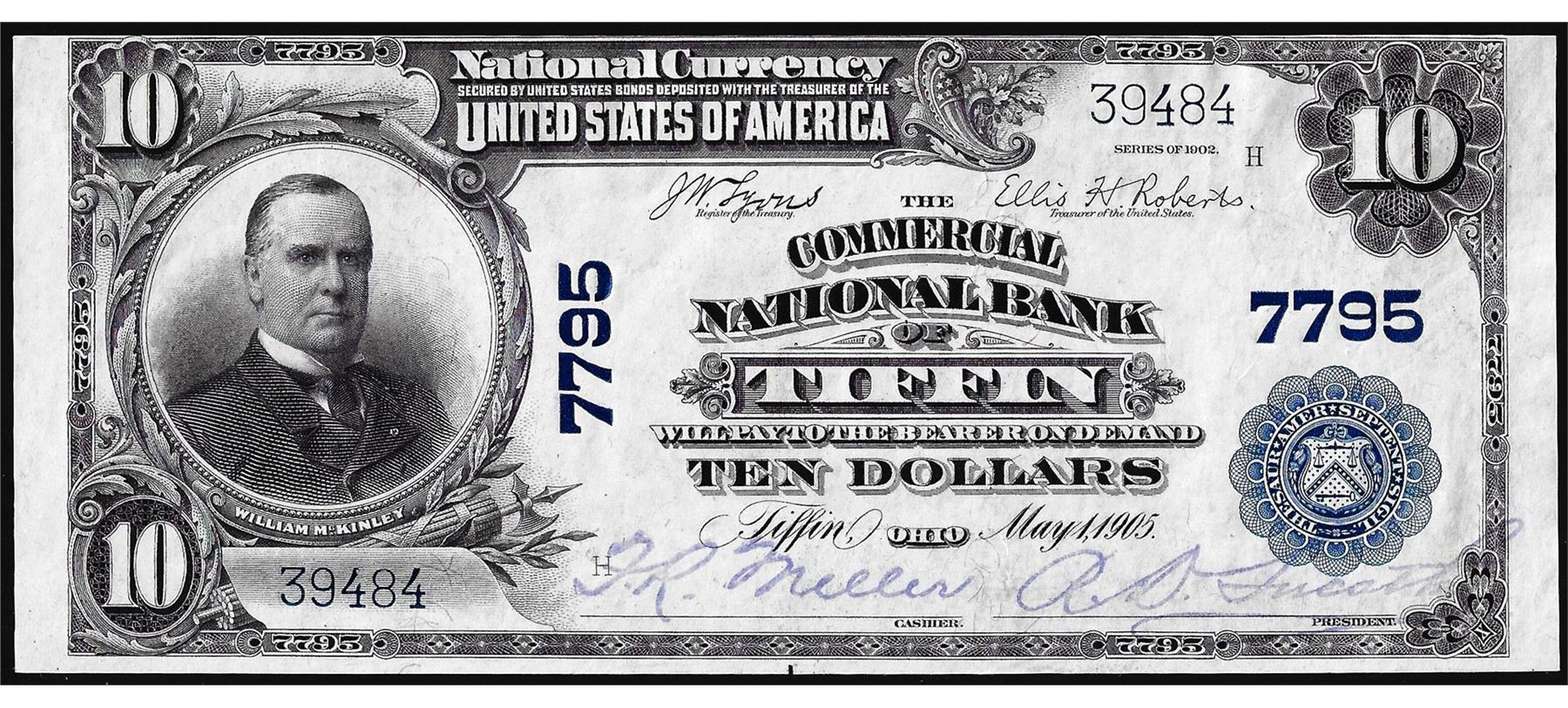 One 1902PB $10 Commercial NB of Tiffin, Ohio CH# 7795 National Currency Note.