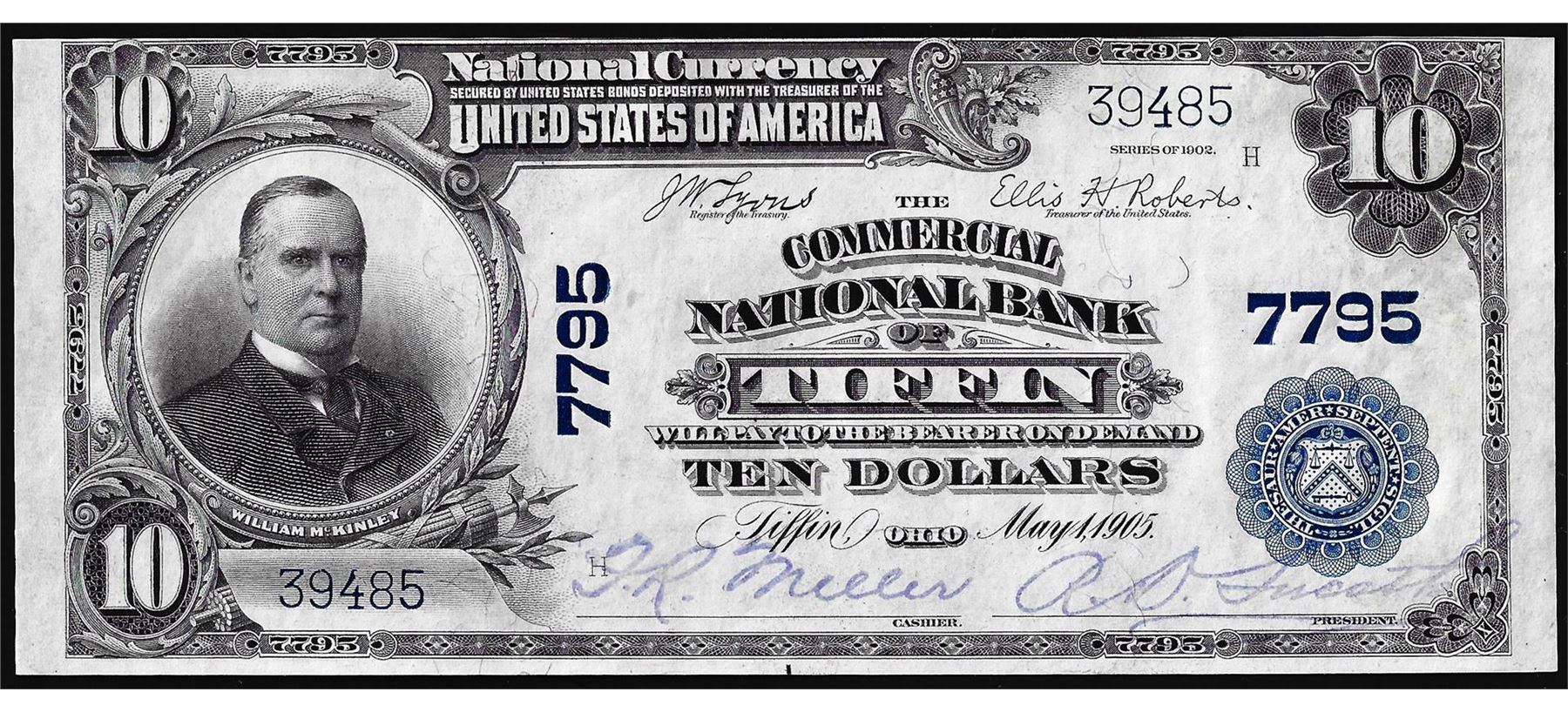One 1902PB $10 Commercial NB of Tiffin, Ohio CH# 7795 National Currency Note.