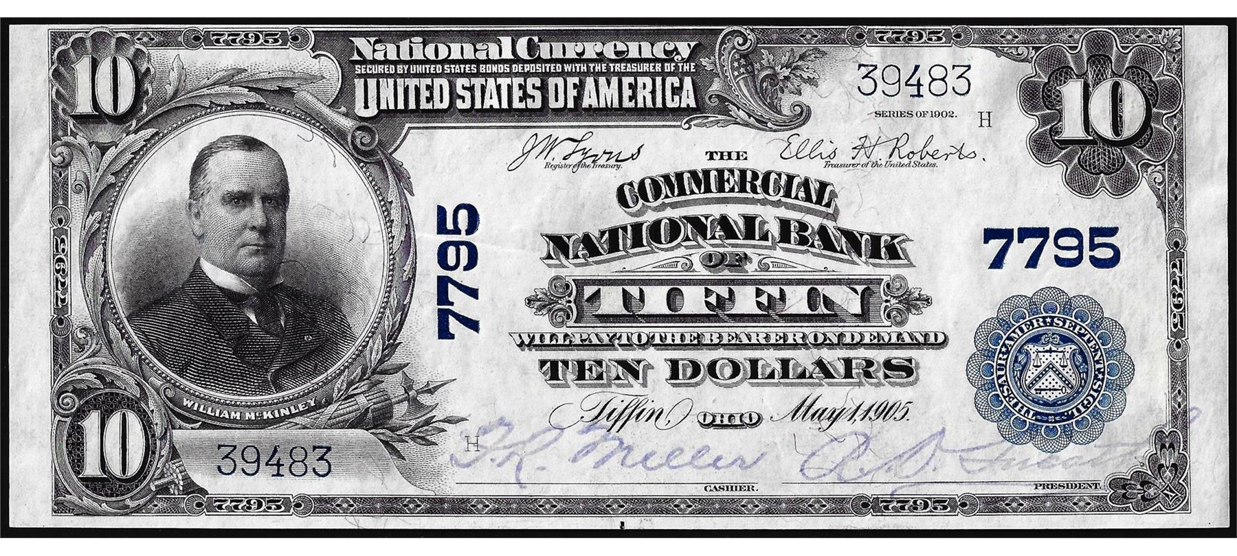 1902PB $10 Commercial NB of Tiffin, Ohio CH# 7795 National Currency Note