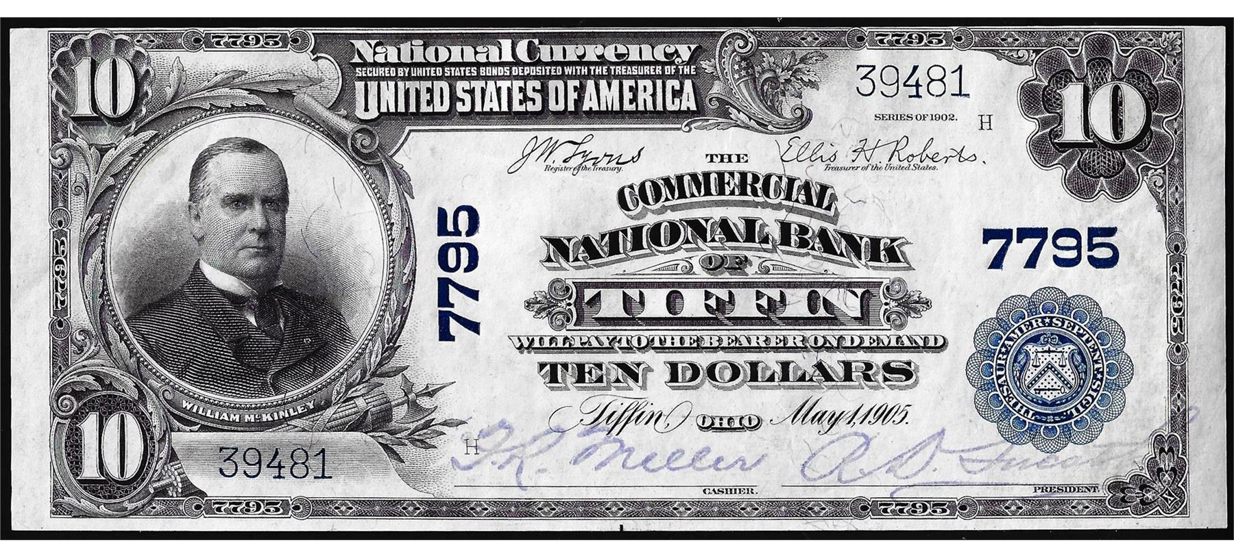 1902PB $10 Commercial NB of Tiffin, Ohio CH# 7795 National Currency Note
