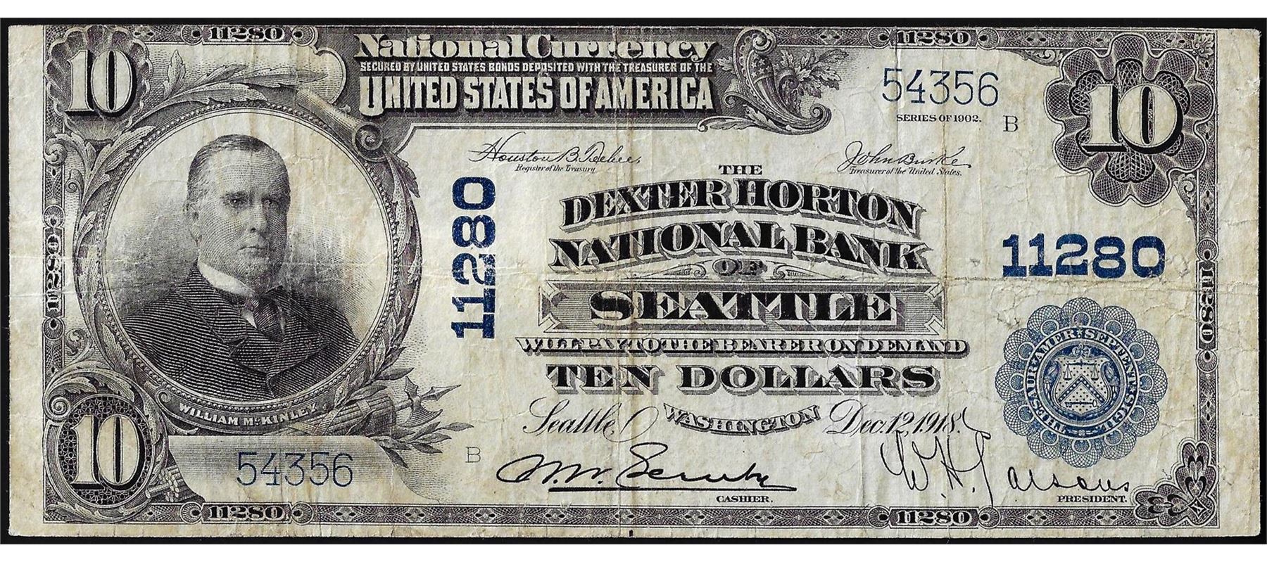 1902PB $10 Dexter Horton NB of Seattle, WA CH# 11280 National Currency Note